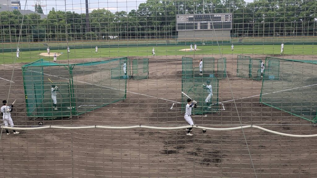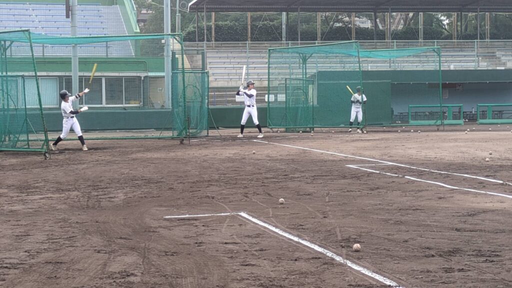 週に2~3日は尼崎ベイコム野球場でバッティング練習や実践練習をしています。