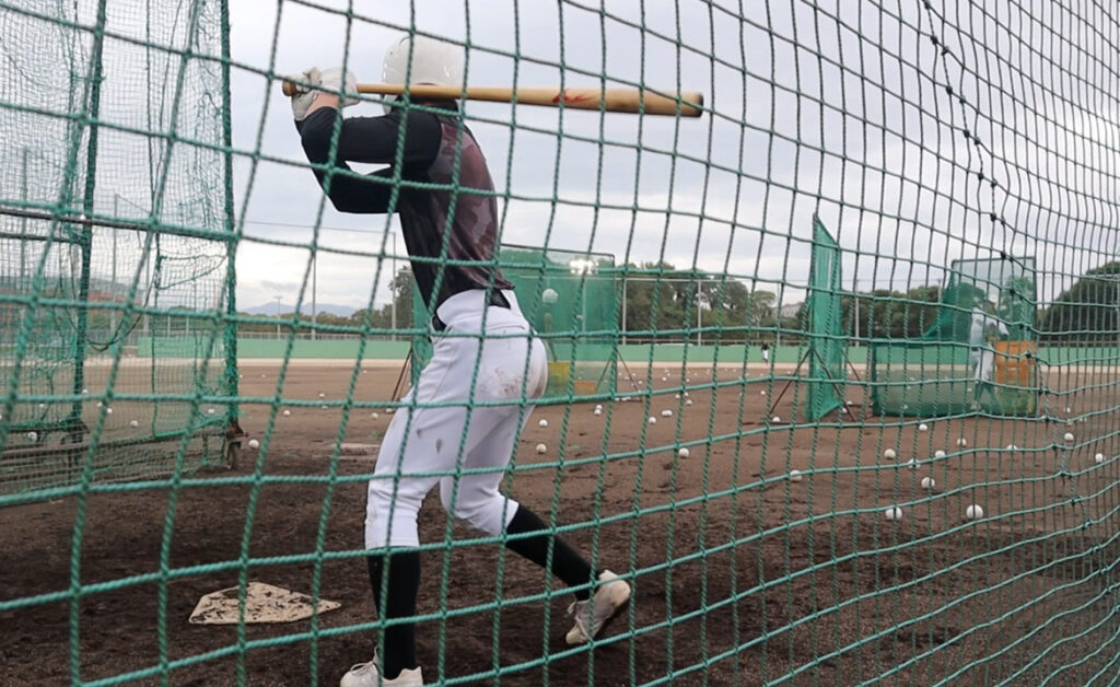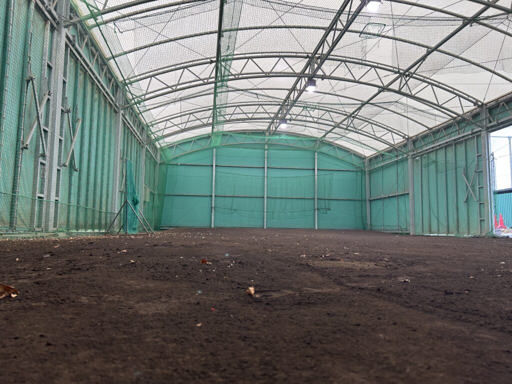 両翼100メートルの広々としたグラウンドに加え、雨天練習場、サブグラウンド、そしてウェイトトレーニング用の器具などが整っており、天候や目的に応じて多様な練習が可能です。
