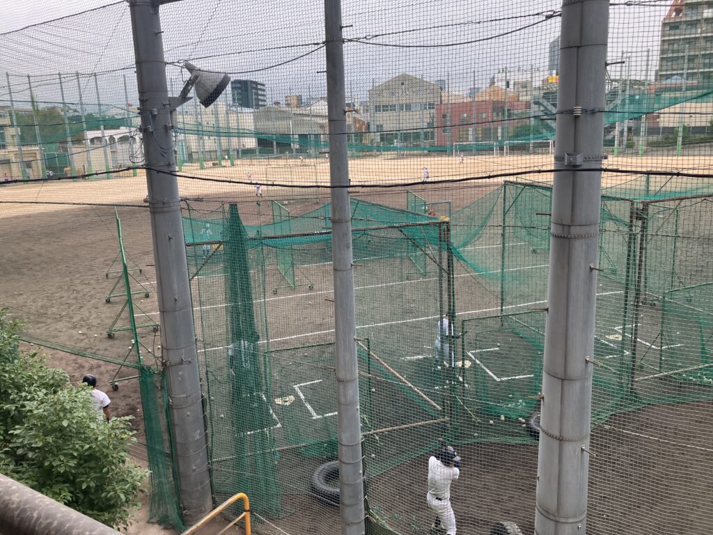 学校グランド(内野黒土、左翼80m・中堅110m・右翼90m練習試合可能、他部共有)