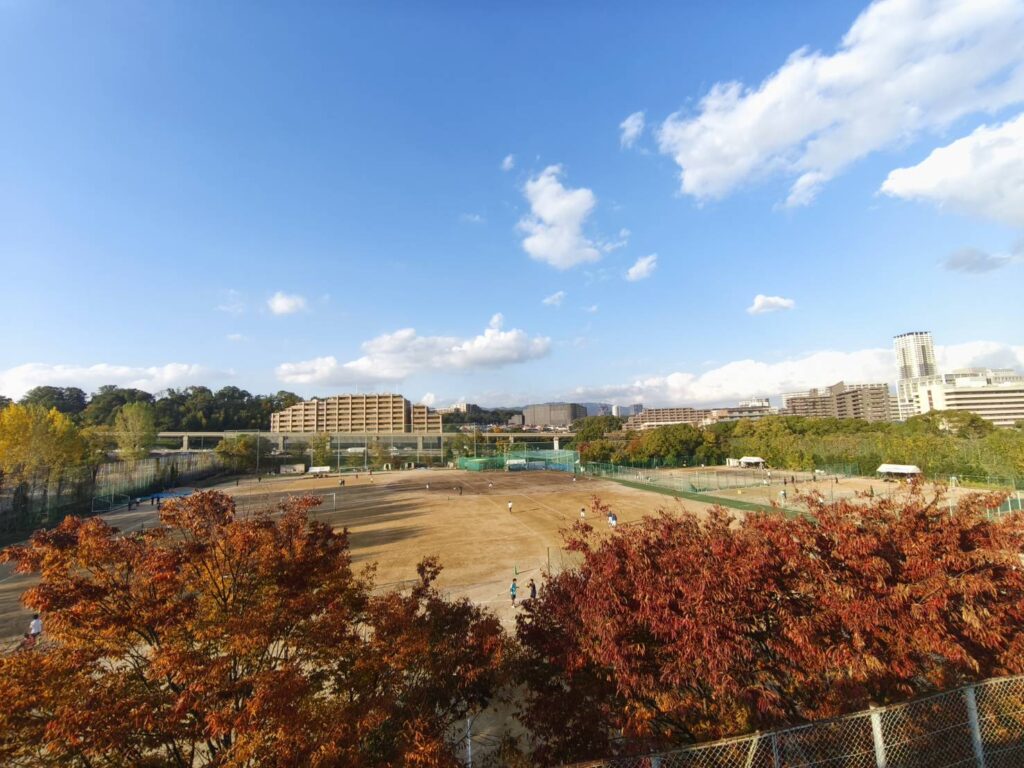 千里中央徒歩15分、閑静な住宅街に囲まれており、府下でも有数の広さを誇る敷地。
