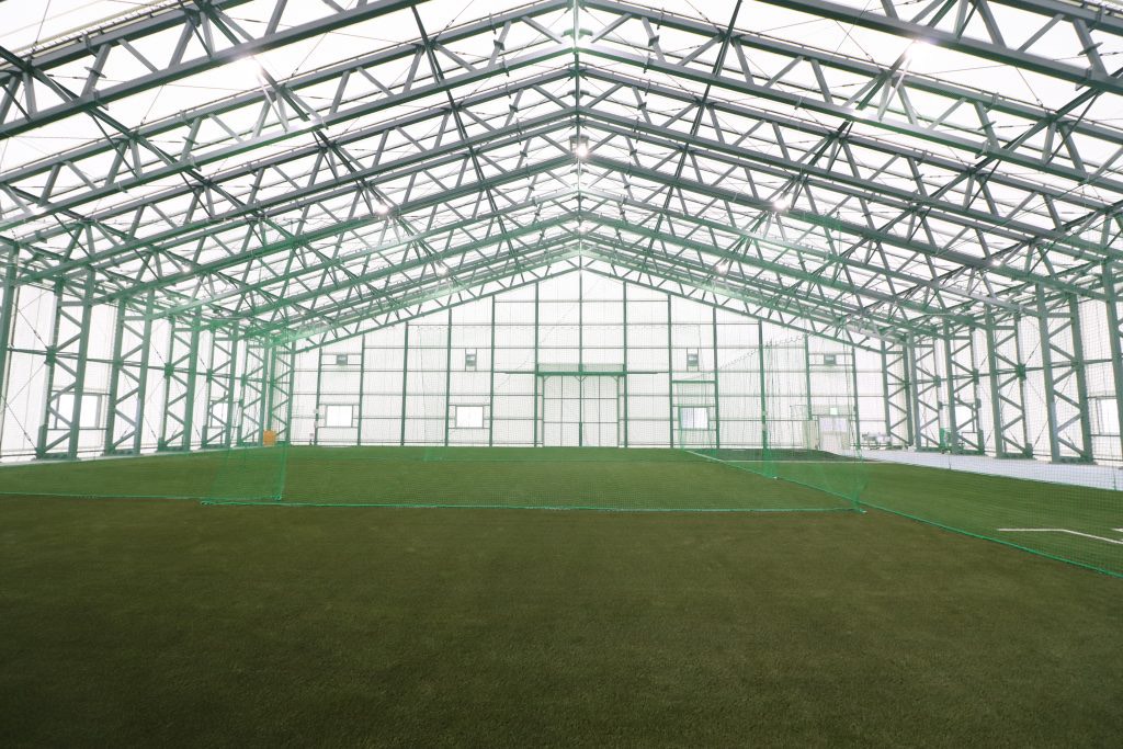 学校の敷地内に野球部専用の両翼103mの広い野球場、その隣には全面人工芝の縦40m×横50m、2000㎡の屋内練習場、300mトラックがあるグラウンド。